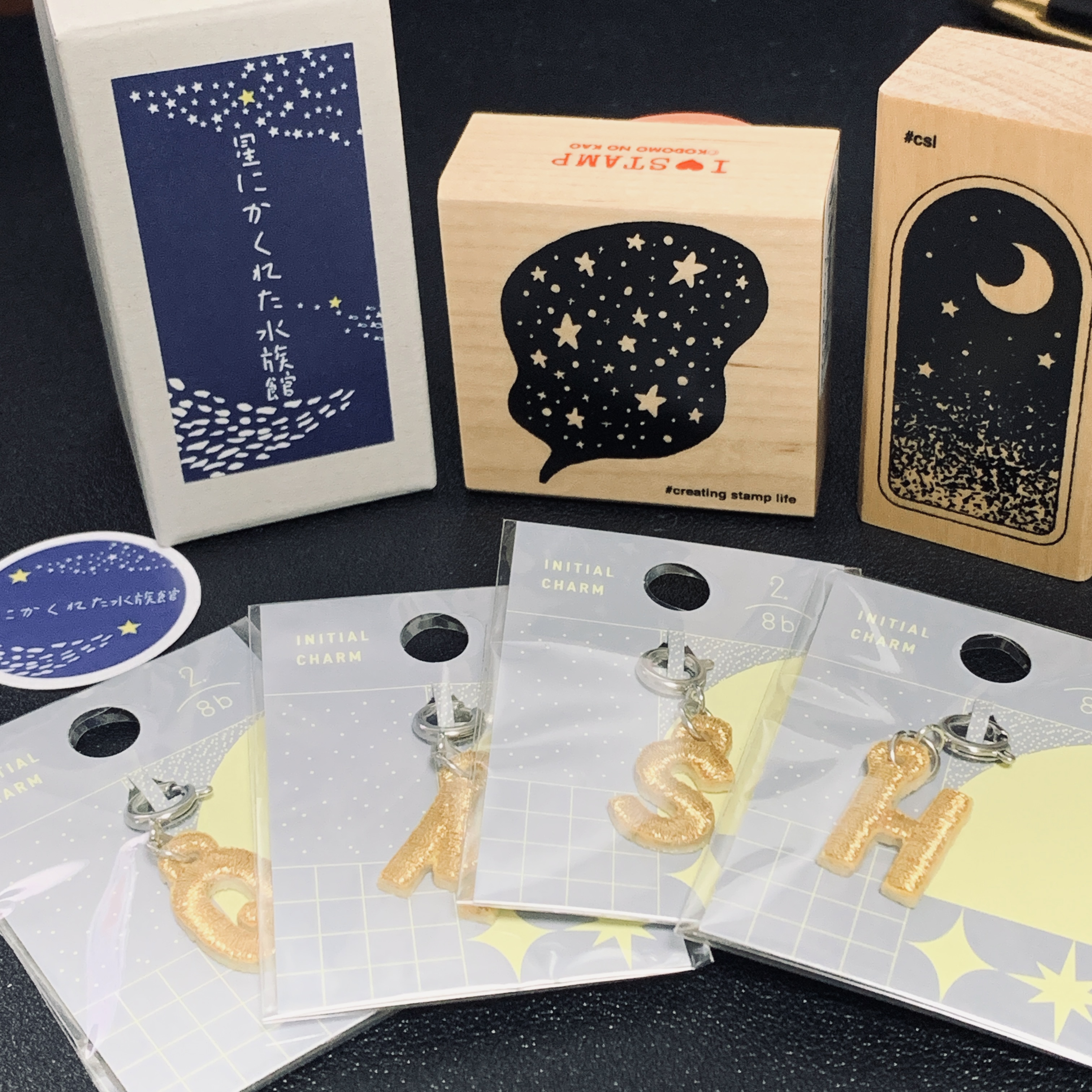 星モチーフのものなどを見ると、つい買ってしまいます…イニシャルチャームは創作手帳につけます!